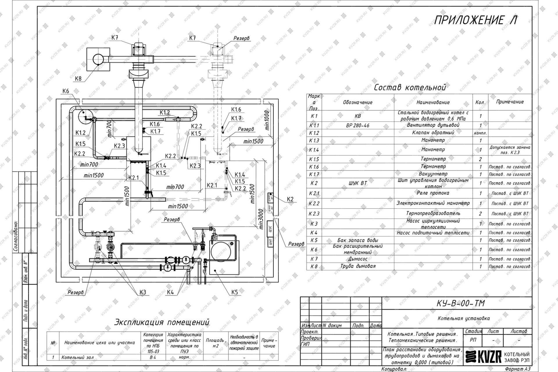 Чтобы правильно подключить котел 200 кВт угольный в котельной необходимо оставить проемы для обслуживания оборудования во время эксплуатации. На представленной здесь схеме указаны их минимальные размеры. Кроме того, в данной примерной схеме монтажа водогрейных котлов и оборудования указан перечень минимально необходимого вспомогательного оборудования для правильной работы котла.