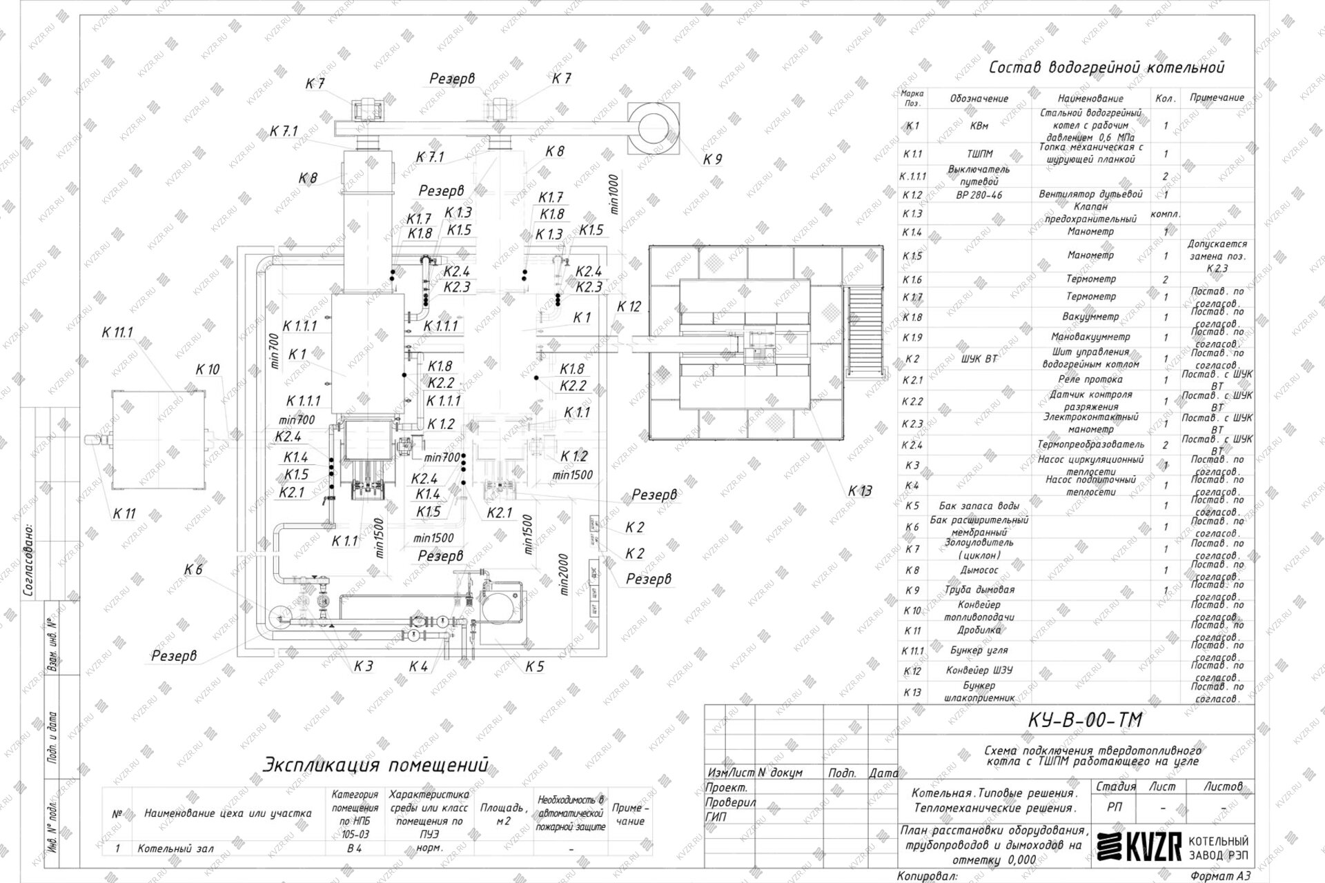 Котельный завод «РЭП» изготавливает водогрейные котлы КВм 1.5 МВт с шурующей планкой ТШПМ не только по типовым проектам, но и по техническому заданию заказчика.