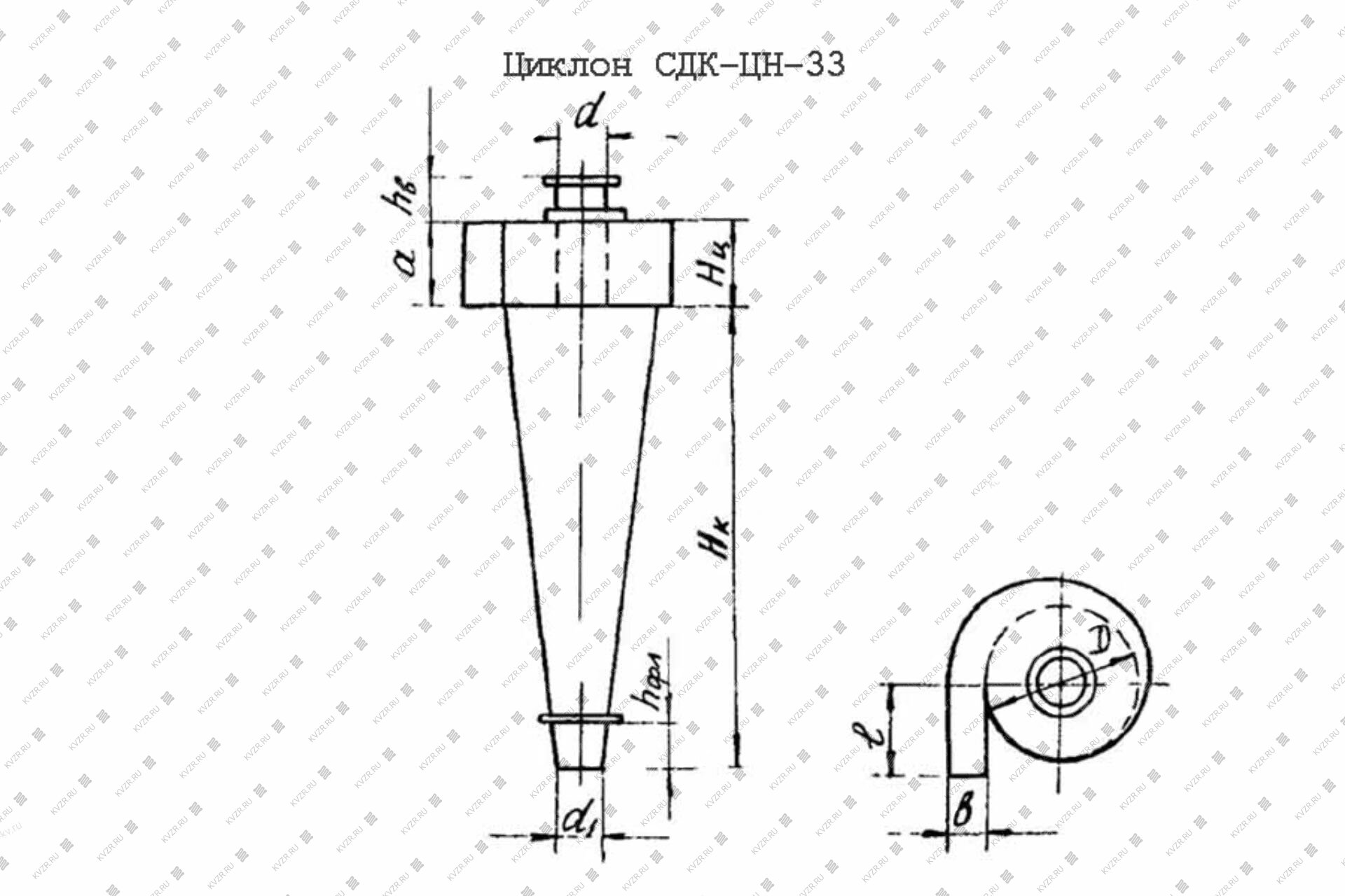 Циклон для пыли СДК ЦН 33 конический, в верхней части которого находится небольшая цилиндрическая вставка с входным патрубком спиралевидной формы для направления входящего запыленного потока. В середине корпуса располагается вертикальная стальная труба для удаления очищенного воздуха. Нижняя коническая часть крепится к бункеру для сбора пыли, который снабжен шиберным или шлюзовым затвором с ручным или электрическим приводом. Конические агрегаты обеспечивают наибольшую эффективность пылеулавливания.